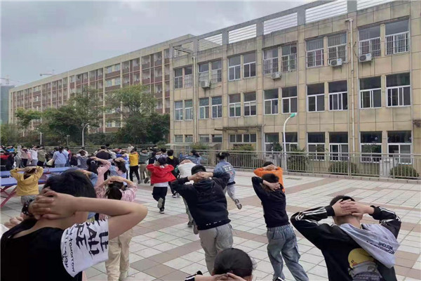 第二声警钟响起后,班主任立即组织学生弯着腰、用双手护着头,沿着学校指定路线快速前进。整个过程紧张有序,全校师生在预定的时间内安全撤离教室,到达指定区域。整个演练共用时3分52秒,全校师生全部安全疏散完毕。