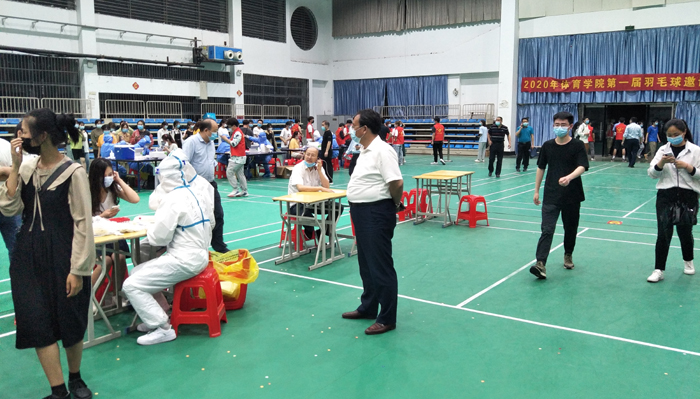此次核酸检测样本采集志愿服务由区委教育工委书记、区教体局局长张恩平任总指挥,局领导班子成员任带班领导,协助各小区医务人员及社区工作人员认真做好宣传动员、解答疑问、人员疏导、信息登记、标本采集等工作,确保了城南镇东方红、梅花社区居民核酸检测样本采集工作有序开展、全面完成。