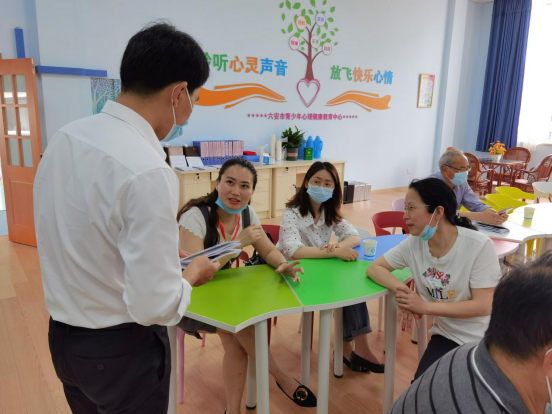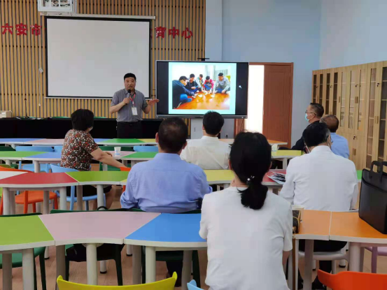 六安市教体局副局长刘玉红向考察团一行详尽介绍了全市青少年心理健康教育现状和政府层面采取的各项行之有效的方法和举措,以及下一步活动开展的计划和方案。