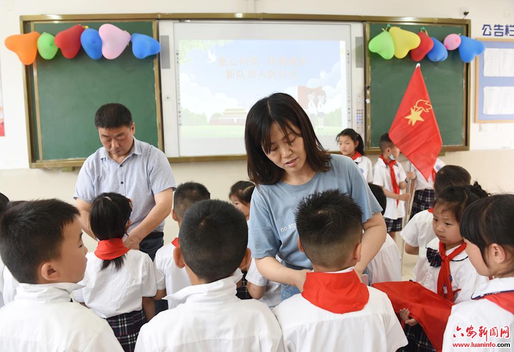 光荣入队,薪火相传。 虽在疫情特殊时期,入队活动仪式感不减,实验小学大队部组织以中队为单位的形式举行简单而庄重的入队仪式。入队仪式在激昂而催人奋进的队歌拉开了帷幕,中队辅导员对同学们进行少先队知识教育,中队辅导员为一年级新队员佩戴红领巾,当鲜艳的红领巾佩戴在新队员的胸前时,一个个脸上都洋溢着难以掩饰的激动与自豪的深情。