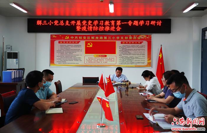 6月2日,六安市裕安区解放路第三小学党总支开展党史学习教育第一次专题研讨暨疫情防控推进会。党总支书记陈德山主持会议并作领学和总结讲话。