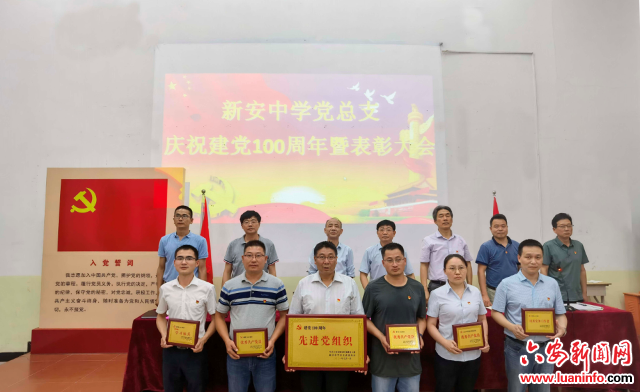 六安市新安中学党总支召开庆祝中国共产党成立100周年 暨“两优一先”表彰大会