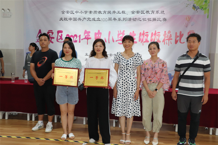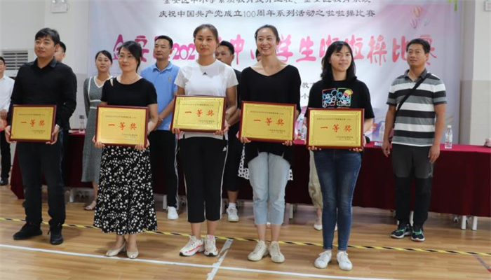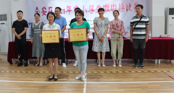 本届比赛由金安区教育局主办,六安市人民路小学东校承办, 来自全区中小学36支代表队近700名学生参加了此次比赛。为体现严格、公平、公正的裁判原则,组委会成立了由专业人员组成的裁判组。比赛现场,选手们身穿绚烂服装,矫健的舞姿焕发青春的光彩,为现场观众带来了一场视觉盛宴,充分展现了金安区中小学生的朝气蓬勃、青春活力、健康向上的精神面貌,同时也得到了专业评委老师的一致认可。经过四个小时的激烈角逐,最终评出小学组一等奖7个,二等奖8个,三等奖12个;中学组一等奖2个,二等奖3个,三等奖4个。比赛结束后,现场对获奖团队及单位进行了颁奖。