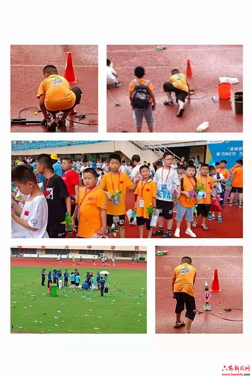 六安市解放路第三小学精选了10名选手组成代表队首次参加比赛,参赛项目既包括学校传统优势项目,更有新开设的航空项目。在比赛中,同学们积极投入,认真参赛,振臂投掷。有几项现场组装模型的环节,由于平时训练有佳,同学们迅速的在短时间内完成了模型的拼装。在调试、试飞的过程中同学们都可以如鱼得水的完成。制作的飞机在空中划过美丽的弧线,点燃了同学们的航空航天梦想。