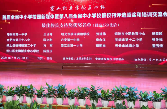 7月29日至31日,由安徽青年报社、安徽省校报校刊联谊会主办的霍山职业学校“匠心”杯首届全省中小学校园新媒体暨第八届全省中小学校报校刊评选颁奖和培训会,在霍山职业学校举行。省教育厅、安徽青年报社、霍山县委宣传部、霍山县教育局、共青团霍山县委等部门单位的领导出席颁奖活动,并致辞,为获奖单位和个人颁奖。来自全省各地的150多所获奖学校领导和校报校刊编辑参加颁奖和培训活动。