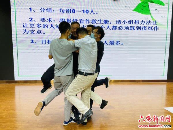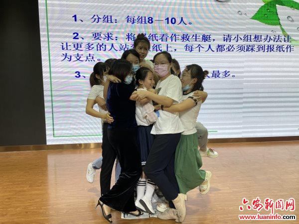 在讲座中穿插的互动环节,沸腾了听课气氛,黄孝玉带领大家现场体验了“同舟共济”分组游戏,男、女教师组分别采用“团抱法”“金字塔”战术,有的组更是将女生背起,相互拥抱借力。老师们在轻松愉悦的氛围中,学会了自我调节和团结互助,并将今日所学应用到家庭生活中和教育教学上,努力付出,坚持不懈就总能遇见更好的自己。