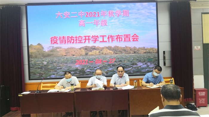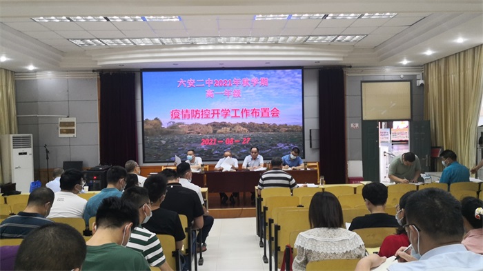 8月27日下午,六安二中在博学楼阶梯教室召开高一年级疫情防控开学工作布置会。校领导班子成员,各处室负责人以及新高一班主任参加了会议。副校长李守宏主持会议。