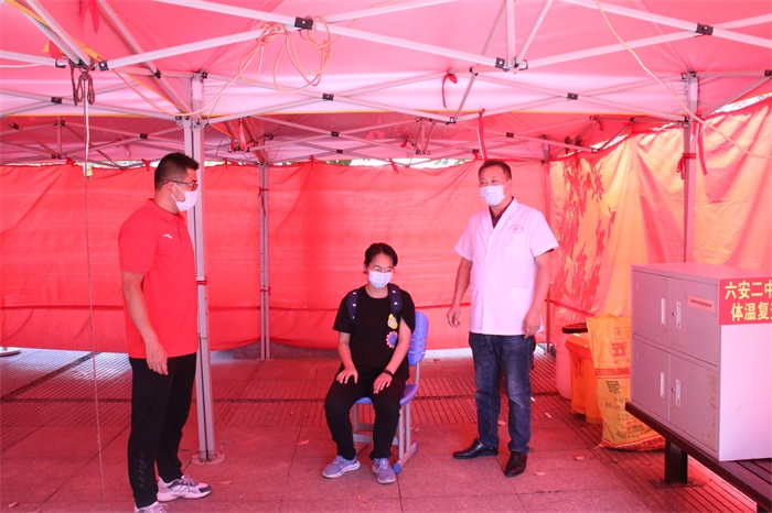 为做好校园疫情防控和2021年秋季学期开学工作,提高防范和应急处置能力,切实保障师生生命安全和身体健康,8月31日下午,六安二中举行2021年秋学期开学疫情防控应急处置演练。党委书记、校长关世宏,党委委员、副校长李守宏、尤奇志、罗会武,校测温值班组带班领导、测温人员、疫情报告员、校医、志愿服务教师参加演练。