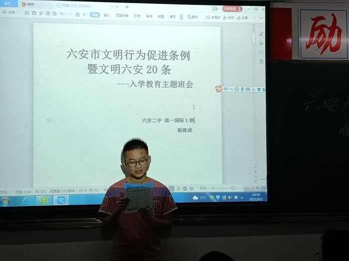 为了帮助同学们“扣好第一粒扣子”,在校长室的统一部署下,我校关工委全体成员全力以赴、积极参与,学校多部门密切协作,安排了丰富多彩的入学教育活动:年级部组织各班开好第一次主题班会,观看中央电视台的《开学第一课》;德育处组织同学们学唱国歌、校歌,背诵“社会主义核心价值观”,进行党史学习教育、国防教育、创城宣传;安教处召开安全教育主题会议,对同学们进行安全及心理健康、遵纪守法教育,签订《六安二中学生日常行为规范承诺书》《校外租住房安全协议书》等;高一全体班主任教育引导同学们给初中母校老师写封信,感恩初中母校,介绍六安二中……