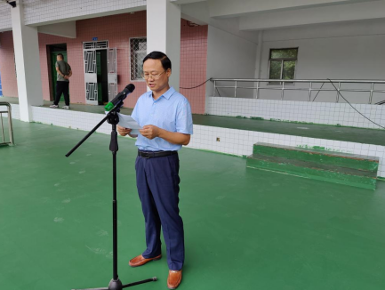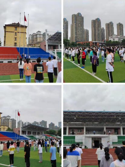 上午9时40分,高二年级全体学生和班主任齐集操场,鲜艳的五星红旗在庄严的国歌声中缓缓升起。