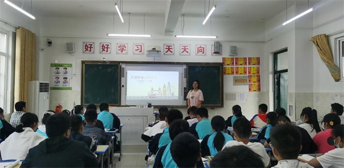 班队会上,班主任详细传达了道路交通安全知识,主要包括:步行安全知识、乘车安全知识、交通事故逃生常识、骑车须知、交通指挥信号灯的规定、找打122交通事故台、行人应遵守交通法规和公共道德以及乘车公共道德。