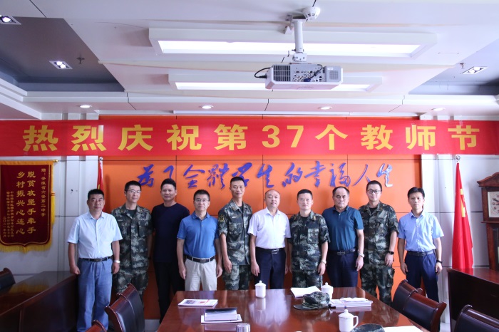 9月9日下午,武警六安支队支队长张冀,副支队长潘涛等一行来六安二中进行教师节慰问,代表武警六安支队官兵向学校全体教职工致以节日的问候和祝福。校领导班子及相关处室负责人同部队领导进行了亲切座谈。