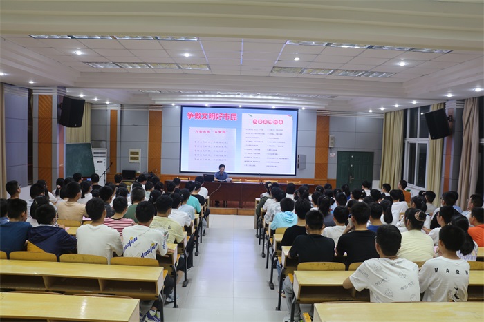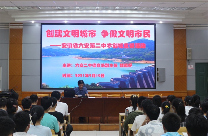 为了进一步推进文明城市、文明校园创建活动,提升全体学生文明素养,养成健康文明的行为习惯,2021年9月10日晚,该校德育处组织开展了全体学生创城宣讲活动。本次活动分为主会场和分会场,主会场设在博学楼二楼阶梯教室,高一国际(2)班和国际(3)班学生参与现场活动,全校其他班级由班主任组织在各自教室通过广播系统参加活动。本次活动的主讲人是德育处副主任桂运好,德育处主任宋玉祥及部分班主任参加了主会场活动。