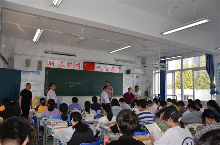 为了进一步促进高二年级各班加强班级文化建设,形成良好的班风学风,巩固该校文明校园创建成果。9月14日早读,该校举行2021年秋学期高二年级第一次班风班貌大检查。副校长李守宏、尤奇志带领校德育处、安教处、高二年级部等相关处室负责同志开展检查活动。