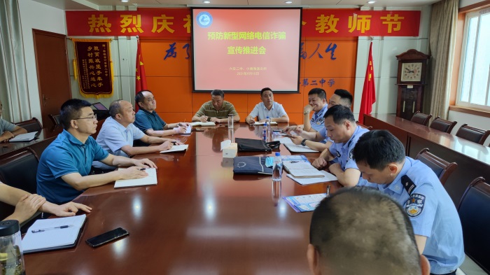 为切实增强防范意识,有效预防和遏制电信网络诈骗案件的发生,9月15日,六安二中与小南海派出所联合召开了预防新型网络电信诈骗宣传推进会。六安二中党委书记、校长关世宏,党委委员、副校长李守宏、尤奇志、罗会武,小南海派出所所长陆军等近20人参加会议。六安二中党委书记、校长关世宏主持会议。