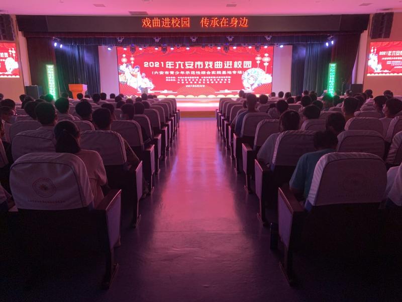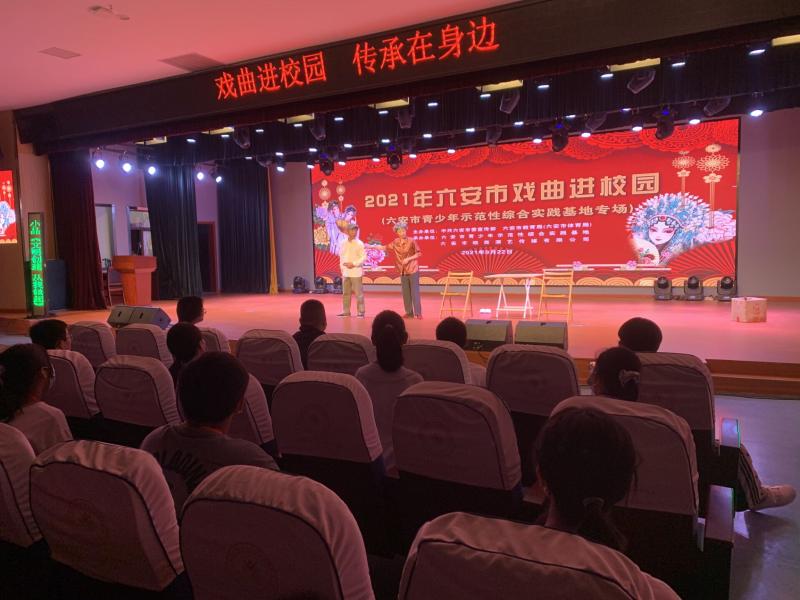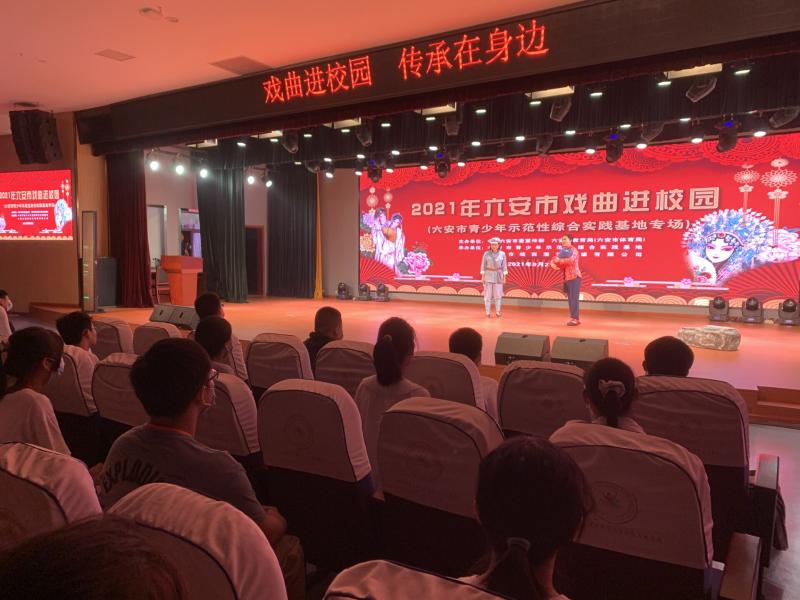 为传承和弘扬中华优秀传统文化,展现非物质文化遗产的魅力,让更多的中小学生领略戏曲艺术的魅力,了解并认同中华民族的优秀传统文化精髓。9月22,由中共六安市委宣传部、六安市教体局主办、六安市青少年示范性综合实践基地和六安市皖西演艺传媒有限公司共同承办的 “戏曲进校园专场活动”在实践基地拉开帷幕,为基地老师、教官和参训的八年级学生献上一顿丰盛的传统文化大餐。