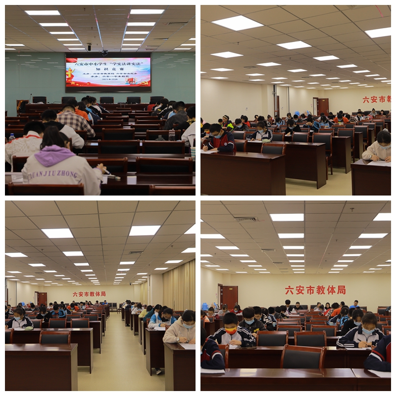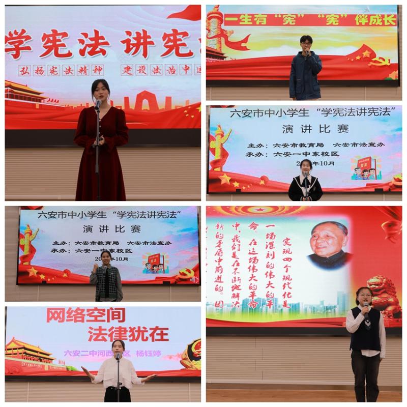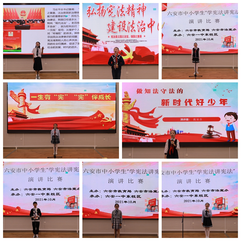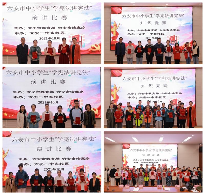 为进一步弘扬宪法精神,全面落实国家和省、市“七五”普法规划,深入推进广大中小学生宪法学习教育活动,增强广大师生法治意识、法治知识和法治能力,10月10日,由市教体局和市法宣办主办、六安一中东校区承办的全市中小学生“学宪法讲宪法”演讲比赛和知识竞赛如期举行。来自市直及各县区中小学、经过层层选拔推荐的78名选手参加了演讲比赛和知识竞赛。市教育工委委员、市教体局副局长王勇、市司法局二级调研员李健出席现场观看了比赛。