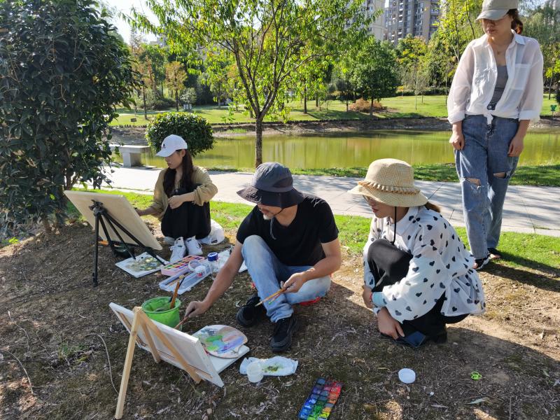 10月3日,老师们在淮南师范学院美术与设计学院陶小陵老师的带领下来到南湖湿地公园,开启了写生之旅。金秋十月,依然是烈日炎炎,却阻止不了老师们的创作激情,在观摩了陶老师精彩的现场示范之后,老师们纷纷投入到写生创作之中,通过此次色彩写生,老师们纷纷表示今后还是要多画多练,努力提高自身美术专业水平。