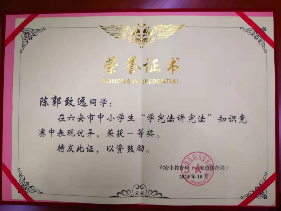 喜报——六安二中学生荣获市中小学“学宪法讲宪法”演讲比赛和知识竞赛一等奖