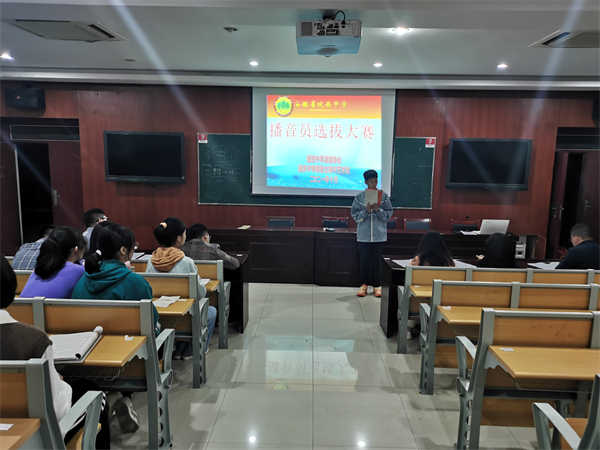 为了丰富校园文化生活,提升同学们的语言表达能力和综合素质,给大家提供一个锻炼自我、展示自我、超越自我的平台,2021年10月13日晚,由皖西中学团委和演讲协会及播音主持与艺术社联合开展的第十五届广播员选拔比赛在一楼阶梯教室成功举办。