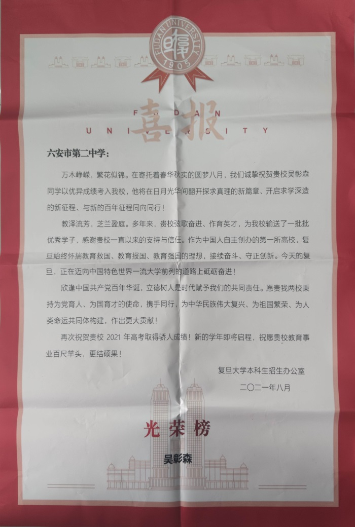 复旦大学致六安二中的喜报 编辑:汤晓雪 来源:六安二中 浏览次数: 次 发布时间:2021-10-19 16:21:42 【字体:小 大】 扫一扫在手机打开当前页 【打印正文】 上一篇:推进教研迎挑战,细化管理抢先机——六安二中开展2021年骨干教师研修活动 [ 2021-10-19 ] 下一篇:市教体局到城关三小教育集团检查指导文明校园创建工作 [ 2021-10-20 ]