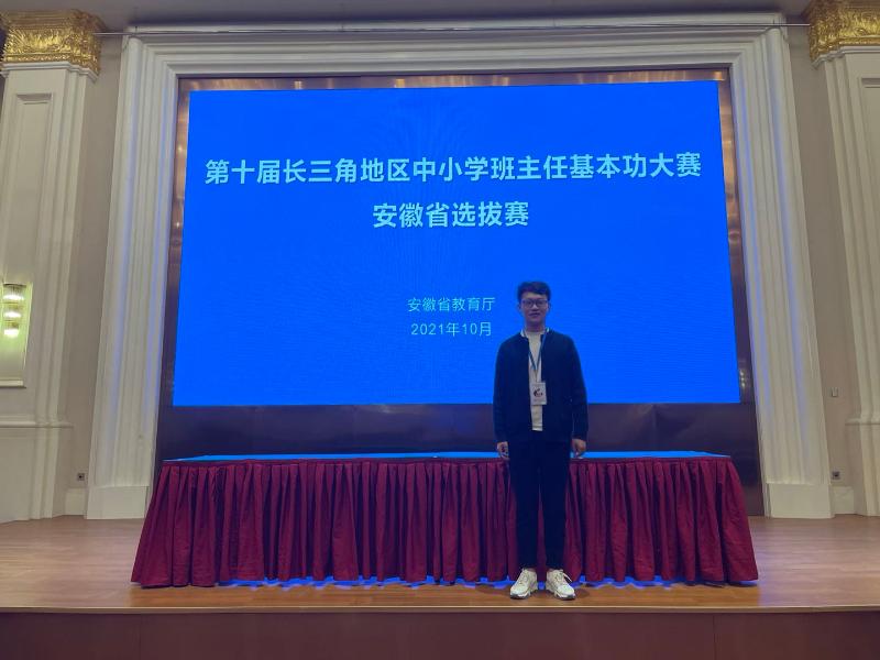 2021年10月15日,由安徽省教育厅主办的“第十届长三角地区中小学班主任基本功大赛”在芜湖市举行。经过精彩比拼和激烈角逐,六安市人民路小学吴贻锴老师最终脱颖而出,一举获得安徽省中小学班主任基本功大赛一等奖的好成绩,同时将代表安徽省角逐长三角地区中小学班主任基本功大赛。