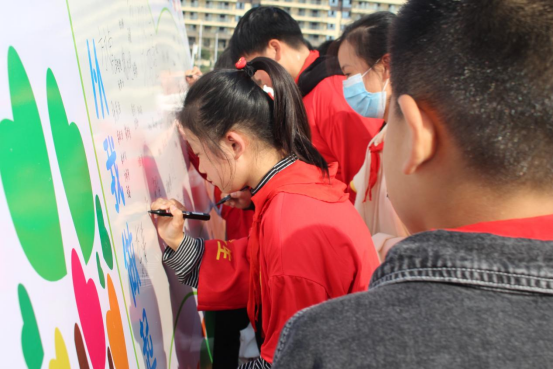 活动中,同学们在签名墙上签上自己的姓名,这是一种庄重的承诺:文明礼仪,从我做起,从现在做起。