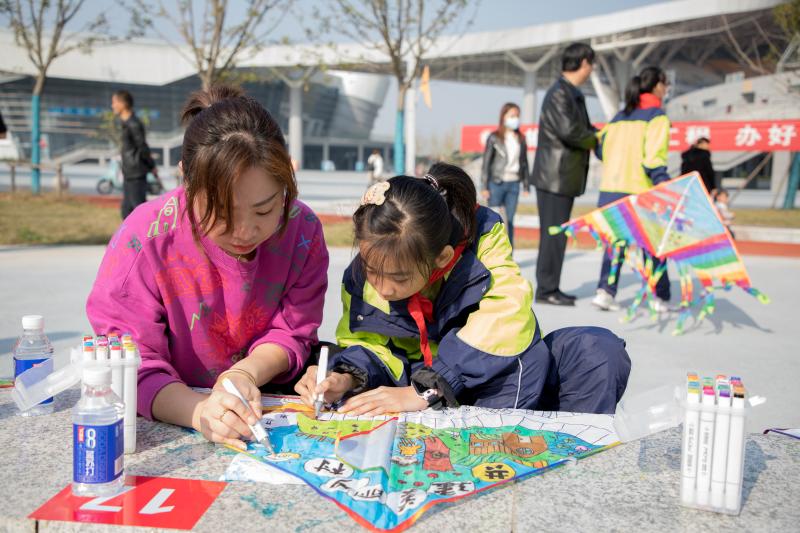 活动当日,秋高气爽,40多名小学生在家长的陪伴下,一早就来到了市体育中心广场集中,并在签到板上共同签上姓名。随后,在组织活动的工作人员引领下,学生和家长按照活动流程安排和要求,首先来到作画区,一条弧线形落座后,铺开风筝,拿起画笔,现场绘画……裕安区33项民生工程政策实施成果,在孩子们的笔下,以生动的图画栩栩如生地展现在大家的眼前。绘画完成后,学生们在家长的协助下,为风筝插杆搭线,并按照顺序沿着放飞路线,分组放飞风筝。小画笔承载着大梦想,一只只展翅高飞的风筝,代表着孩子们对民生改善的喜悦和未来美好的憧憬!