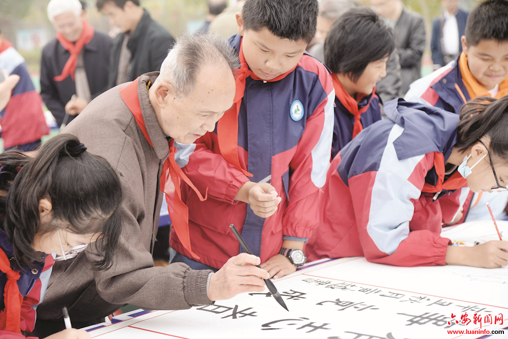 11月2日,金安区关工委邀请六安市15位书画艺术家走进人民路学校南校,开展“弘扬中华优秀传统文化、推进‘双减’工作落地生根”主题活动,向该校小学生们免费传授书法和绘画技巧。据了解,2015年秋建成招生的人民路学校南校,目前是我市唯一一所十二年一贯制区直属全日制现代化学校(含幼儿园、小学部、初中部)。今年,在“双减”政策不断细化的背景下,金安区关工委为丰富校园文化生活,让同学们感受中国书画的博大精深,组织书画艺术家走进校园,耐心细致地教学生们握笔和书画技巧,现场气氛浓郁,墨香四溢,书画艺术家们精湛的书法技艺,美轮美奂的书画作品,令师生赞叹不已。 (皖西日报融媒体记者 刘扬 田凯平 文/图)