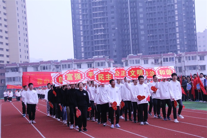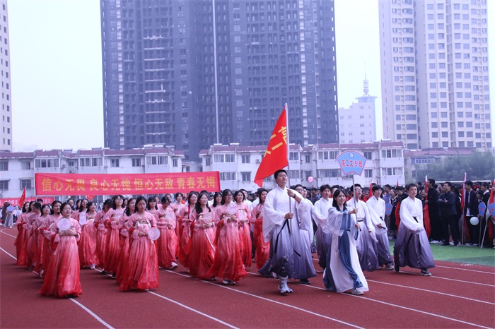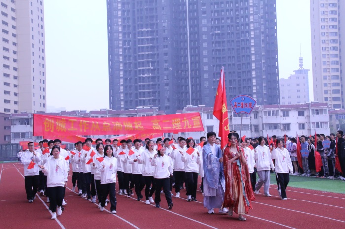 踏着青春的步伐,伴着激昂的旋律,由国旗、校旗、会旗护卫队,红旗方队及高一、高二各班级组成的61个方队依次走过主席台。他们迈着整齐的步伐,喊着热情洋溢、铿锵有力的口号,朝气蓬勃、意气风发,展示了二中学子的激情与活力。