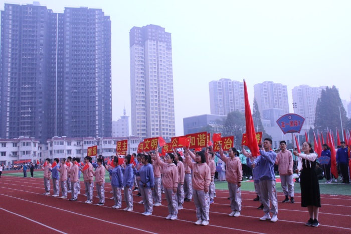 在庄严的升旗仪式后,校党委委员、副校长尤奇志代表学校致开幕词。裁判员代表、运动员代表先后进行宣誓,他们表示遵循大会规则,确保此次运动会安全有序进行。校党委委员、副校长罗会武代表校田径运动会组委会宣读《六安二中田径运动会八项纪律》。