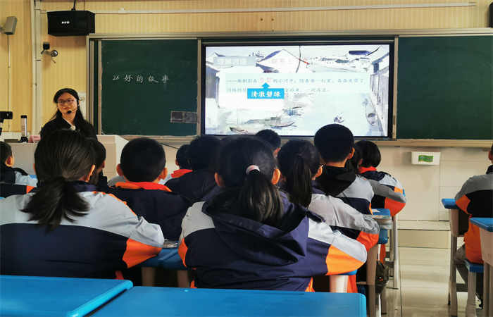 赛前,廖老师深入研读教材,查找资料,精心备课、磨课,精益求精,对上课的每一个环节都细细打磨。课前,廖老师给孩子们准备了一段视频,让孩子们能直观地认识鲁迅。因为《好的故事》是鲁迅先生写于1925年的作品,距离现在将近百年,所以要读懂这篇文章需要了解当时的背景,廖老师做好了渗透。课上,廖老师引领学生品读描绘梦境的语段,借助关键语句,感受梦境的“美丽、幽雅、有趣”,带着学生入情入境,一起感受这个“好的故事”。