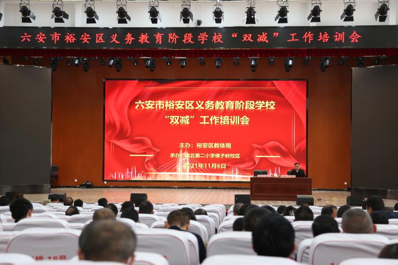 为深入贯彻落实中共中央、国务院关于“双减”教育改革工作相关精神及省、市工作要求,切实减轻义务教育阶段学生的作业负担和课外培训负担。11月6日上午,裕安区义务教育阶段学校“双减”工作培训会在城北二小佛子岭路校区报告厅召开。区教体局机关全体工作人员,各乡镇中心学校、城区教育辅导区、义务段学校校长,义务段学校分管副校长、教务主任、“双减”工作监测平台管理员等参加了会议。