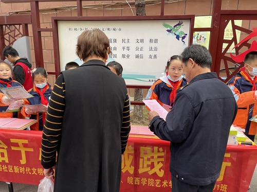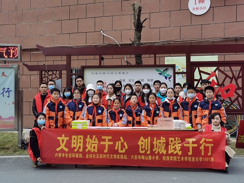 近日,六安市梅山路小学联合金裕社区新时代文明实践站、六安市生态环境局、皖西学院艺术学院音乐学1901班开展以“文明始于心、创城践于行”为主题的未成年人系列实践活动。