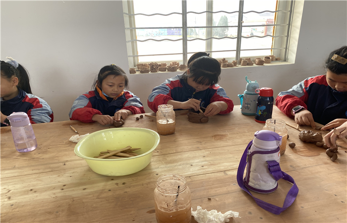 这次劳动实践活动增加了一些室内手工艺课,孩子们积极参与手工艺制作活动,作品的主题形式多样,有泥塑、染布、植物砸拓染、木工等课程。作品构思巧妙,精美绝伦,每一件作品都凝聚了学生们的智慧和创造力,充分展示了他们的动手能力。