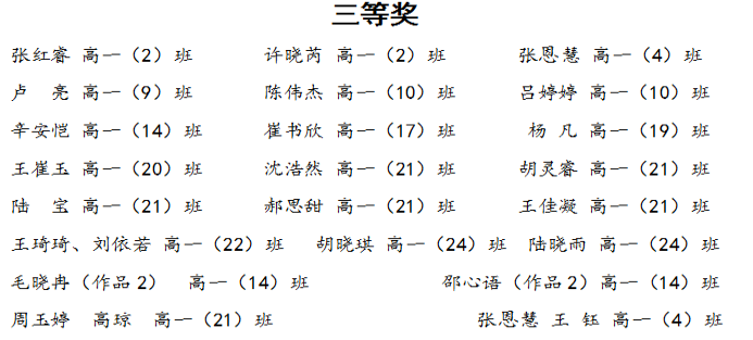 在校长室的关心下,在教科室和高一年级部的大力支持下,在学生们的精心准备、老师们的悉心指导下,经过两周的努力,各班级的层层选拔,最后选出了五十一件优秀作品。生物组教师们对全部作品进行统一编号、打分,最终评选出 一、二、三等奖若干名(具体获奖名单附后),并颁发奖状和奖品。既肯定学生们的杰作,又鼓励学生们:一份耕耘一份收获。