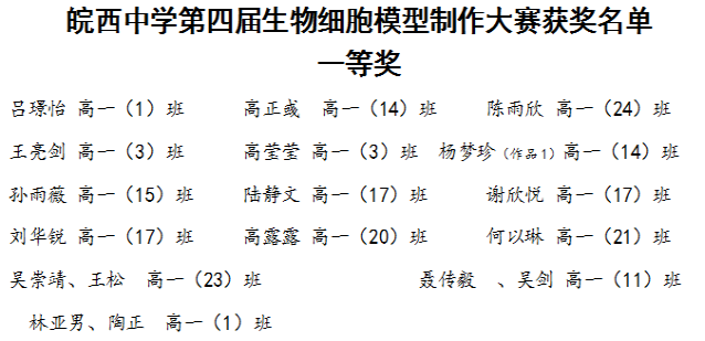 皖西中学生物组坚持开展多种多样的课外活动,如细胞模型制作大赛、创作生物诗歌大赛和辨认校园内所有植物等。这些活动的开展,既开拓学生视野,培养科学思维,又能提高学生的综合素质和动手合作能力。在皖中校园会掀起学生热爱生物学习生物的新风尚。(朱德权)