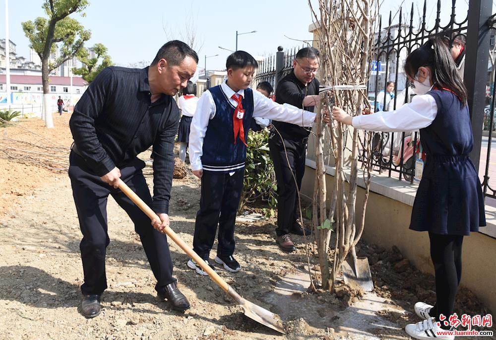 又是一年春暖花开之时,又是一季草长莺飞之际,在这充满绿色的节日里,为加强学生的绿色环保和生态意识,在第44个植树节来临之际,舒城县实验小学(本部)校长室联合大队部于3月11日下午组织了“春意盎然,让绿色常驻校园”植树节活动。