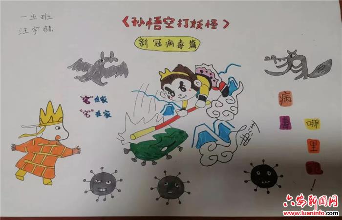 “屋中有画,等于悬挂了一个思想。”雷诺兹如是云。绘本图画不是文字的附属和说明,而是绘本的精髓所在。孩子们首先阅读自己喜欢的一个故事,然后将故事情节或人物诉诸于画笔,通过绘画让人物活起来。笔酣墨饱,只等落笔。瞧啊,在家长的协助下,孩子们那洁白如雪的8K纸上一个个有血有肉的人物、动物登场了,他们丰满生动。有逆流前进、奋发向上终于跳跃龙门的鲤鱼;有刚正不阿、大 吃 义凛然去闹海的哪吒;有顽强不屈、勇于牺牲、降妖除魔的孙悟空......道阻且长,行则将至。即使岁月以荒芜和刻薄相欺,即使新冠病毒以凶险相逼,孩子们将乐观面对困难的信念、对终将战胜疫情的信心凝聚于一幅幅栩栩如生的绘本画中。同时,家长协助孩子完成,也利于培养和谐的亲子关系和温馨的家庭氛围,让孩子们在爱中健康快乐地成长。