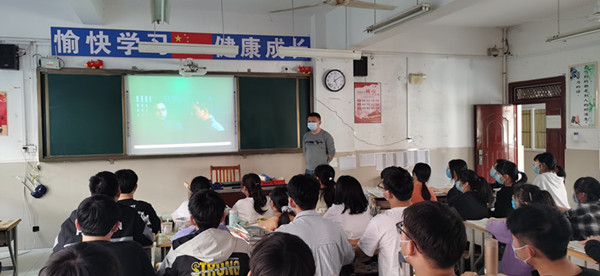 活动伊始,由班主任带领同学们观看了由共青团安徽省委、中共六安市委组织部和共青团六安市委联合出品的短视频《红旗下的青春》,一桢桢、一幅幅鲜活的画面,直观展现了皋城儿女在中国革命、历史改革和社会建设中做出的功绩。通过观看视频,同学们深切感受到今天的幸福生活来之不易,也更加珍惜当下疫情期间来之不易的学习机会。
