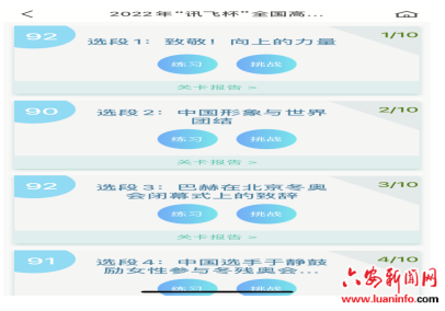 以赛促学,以学提能。大学生外语协会承办开展线上“讯飞杯”全国高校英语口语大赛,大赛以北京冬奥会及北京冬残奥运会为主题,用诗歌般的语言阐述奥林匹克精神的内涵与价值。同学们在官网注册比赛账号并完成所有比赛关卡,结束后系统给出三个维度的评分及总分,挑战次数不限,且奖励丰厚。线上口语大赛不仅达到以赛促学,开拓国际视野、提升英语表达和思辨能力;也丰富了校园文化,鼓励大学生以拼搏向上、超越自我、健康阳光的青春风貌,传递正能量,一起抵御住疫情带来的重重困难,共克时艰。
