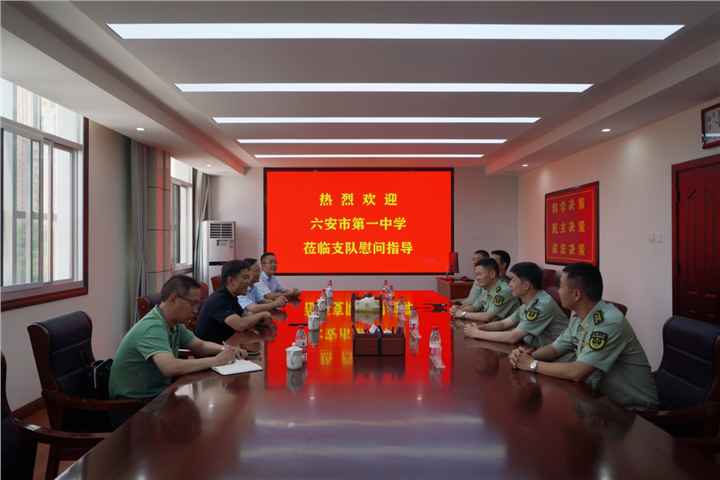 最后,双方还就双拥工作、国防教育、学生思想政治教育等方面进行了深入的探讨,陈明龙代表六安一中真诚邀请支队到学校加强交流。
