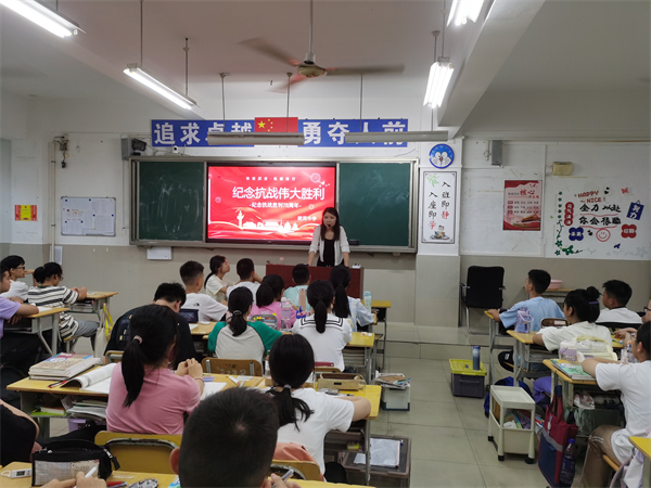 全体班主任高度重视本次主题班会。班会课上,各班班主任带领学生回顾了中国人民反法西斯斗争的伟大历程,同学们认真学习和领悟其中的伟大抗战精神。班主任向全体同学强调,作为新时代青年,要铭记历史、不忘国耻,牢记战争、守护和平,在新时代的召唤中砥砺前行,以伟大历史主动精神肩负起伟大历史使命。