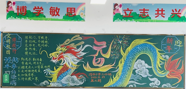 妙笔生花绘祝福,异彩纷呈贺新年。为推进班级文化建设,营造浓厚的节日氛围,丰富校园文化生活,2023年12月29日,六安市城北小学、六安市城北小学教育集团河西小学、清溪路小学、金马小学开展了“庆元旦 迎新年”黑板报评比活动。