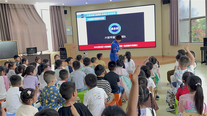 为了加强全体师生防溺水安全意识和自护自救能力,进一步强化防溺水安全教育,5月22日上午,六安市蓝天救援队走进解放北路幼儿园,开展了一场生动的防溺水安全教育活动。