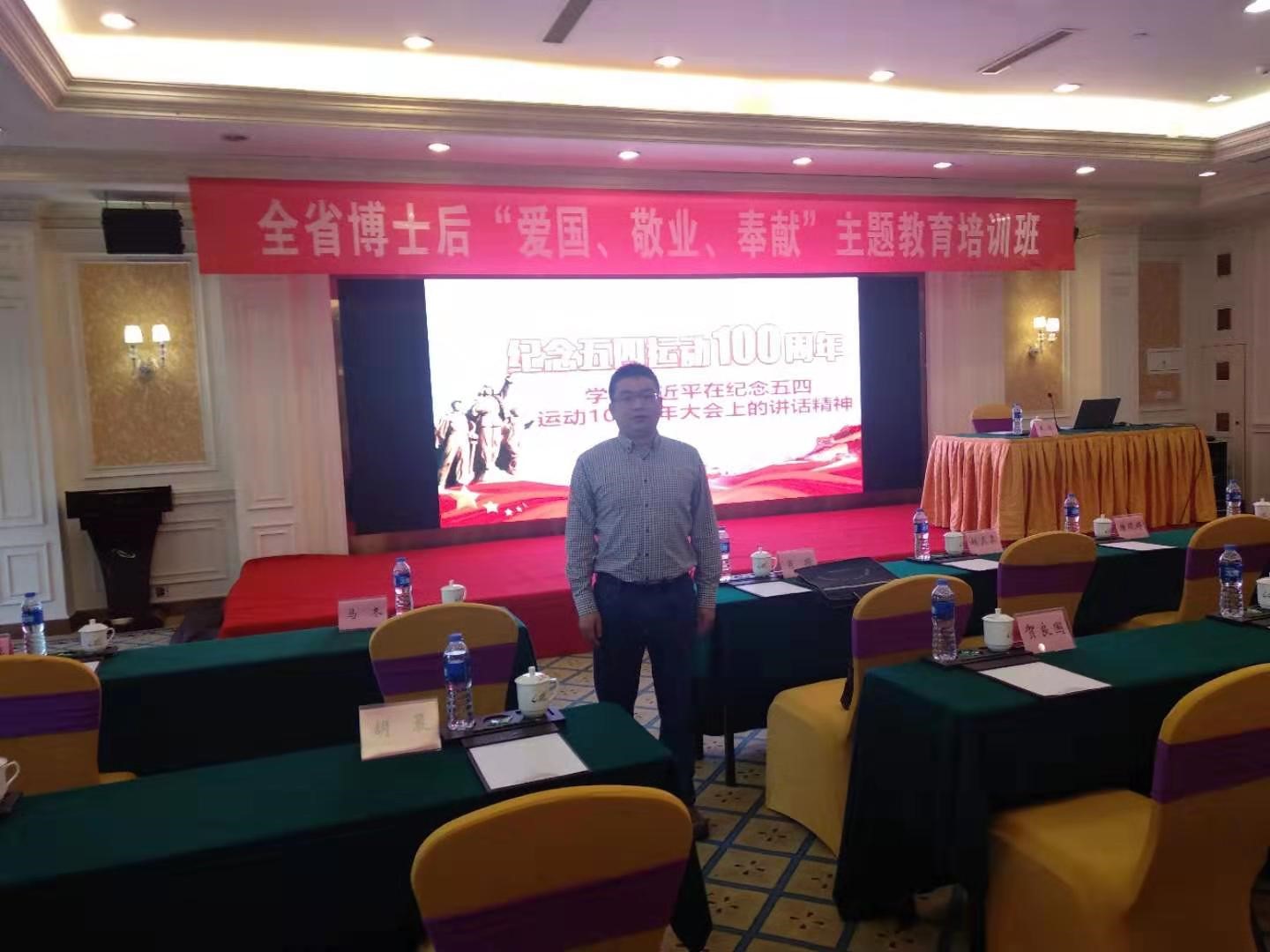 为庆祝新中国成立70周年,深入推进“不忘初心、牢记使命”主题教育,积极培育和大力弘扬社会主义核心价值观,加强博士后人才队伍思想政治建设,安徽省人社厅于11月13日-17日在池州市举办博士后“爱国、敬业、奉献”主题教育培训班。我校在站博士后张舰参加了此次主题教育培训班。