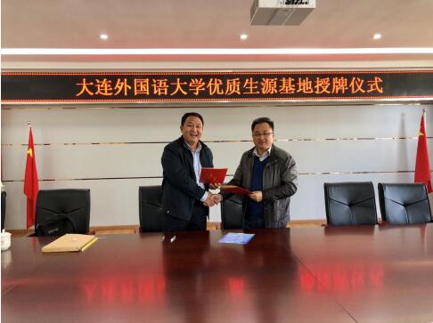 双方签订了《优质生源基地协议书》。于处长代表大连外国语大学授予该校“优质生源基地”牌匾。