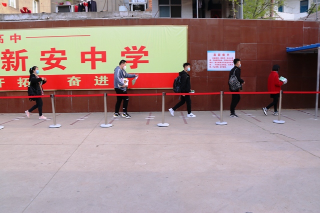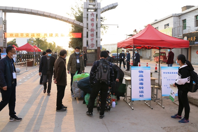 4月7日早晨,六安市新安中学大门口和教学主楼的电子显示屏上“欢迎平安返校 共建美丽校园”和“热烈欢迎高三学生顺利返校”巨幅标语格外醒目,教学主楼五星红旗迎风飘扬,校园广播系统播放轻快的音乐和《开学寄语——写给疫情下复课的高三学子》广播稿。根据《安徽省人民政府关于2020年春季学期全省学生返校安排的通告》和《中共安徽省委教育工委 安徽省教育厅关于切实做好高三初三年级学生返校工作的通知》精神,六安市新安中学2020届高三学子于今天返校。