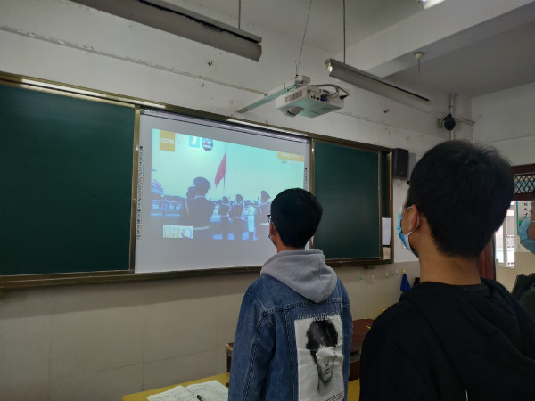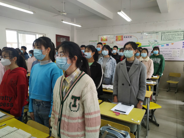 受新冠疫情影响,本次升旗仪式继续采取广播播音的方式。上午10:30,在初一(6)班班主任黄超老师的主持下,非毕业班同学全体起立,在国歌声中观看班级多媒体播放的升旗仪式,行注目礼,雄壮的国歌在校园里回荡,整个过程庄严肃穆!