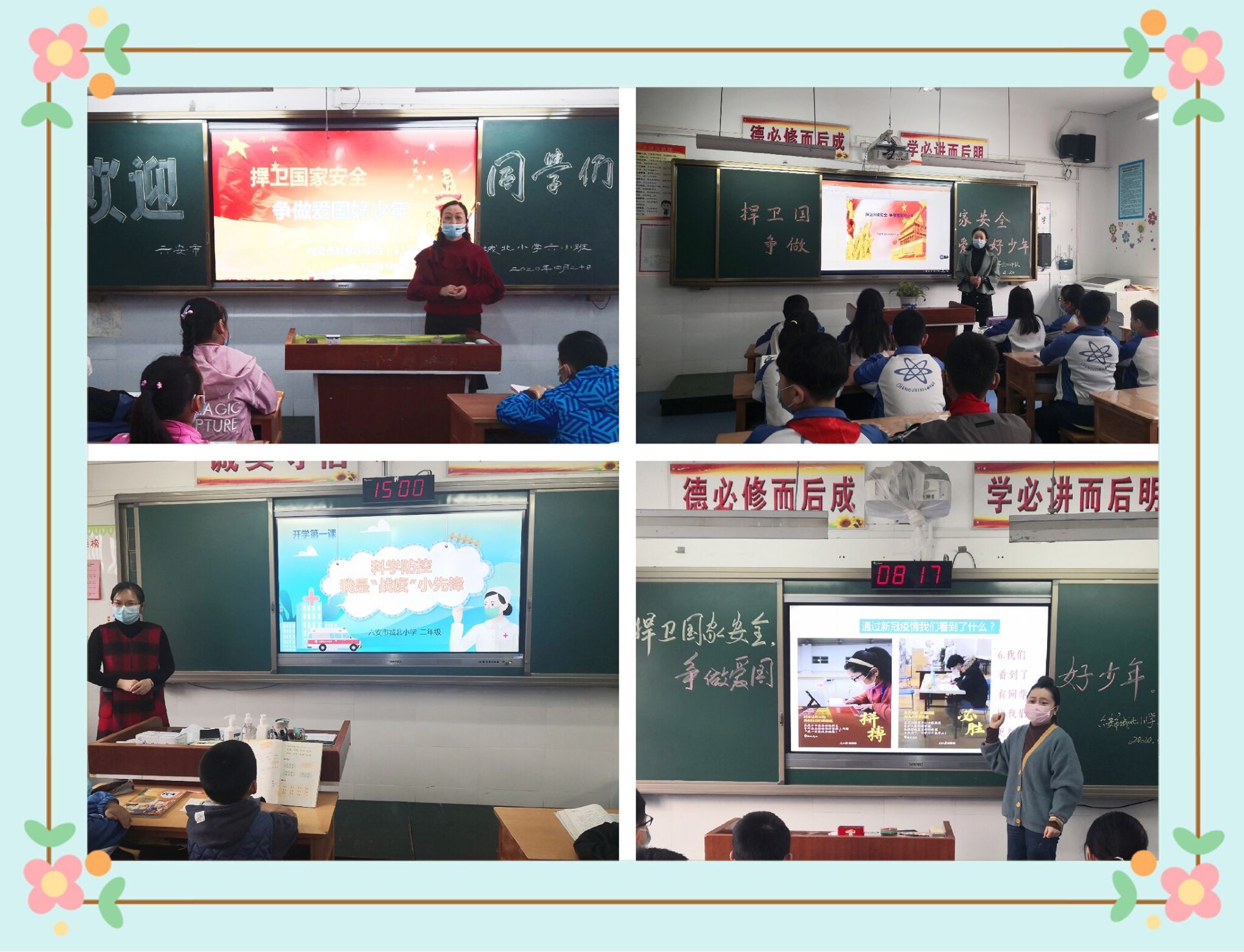 2. 分年级开展不同主题的班队会活动。一二年级开展科学防控 我是战“疫”小先锋;三四年级开展同心抗疫 守护学生心理健康;五六年级开展捍卫国家安全 争做爱国好少年。